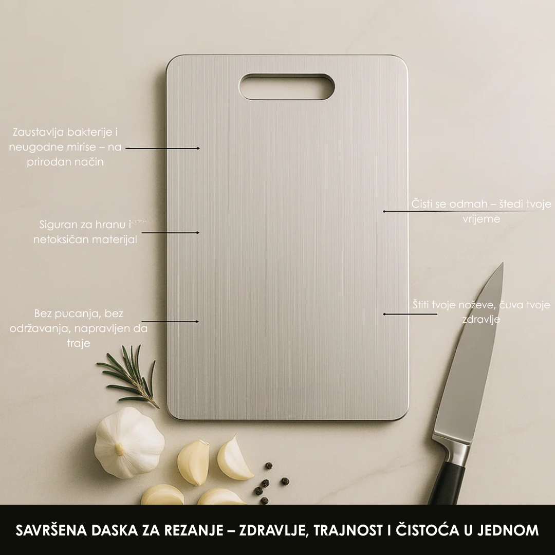 Naša titanijumska daska za rezanje je vaš najbolji štit protiv skrivenih bakterija, tvrdokornih mirisa i štetnih toksina.