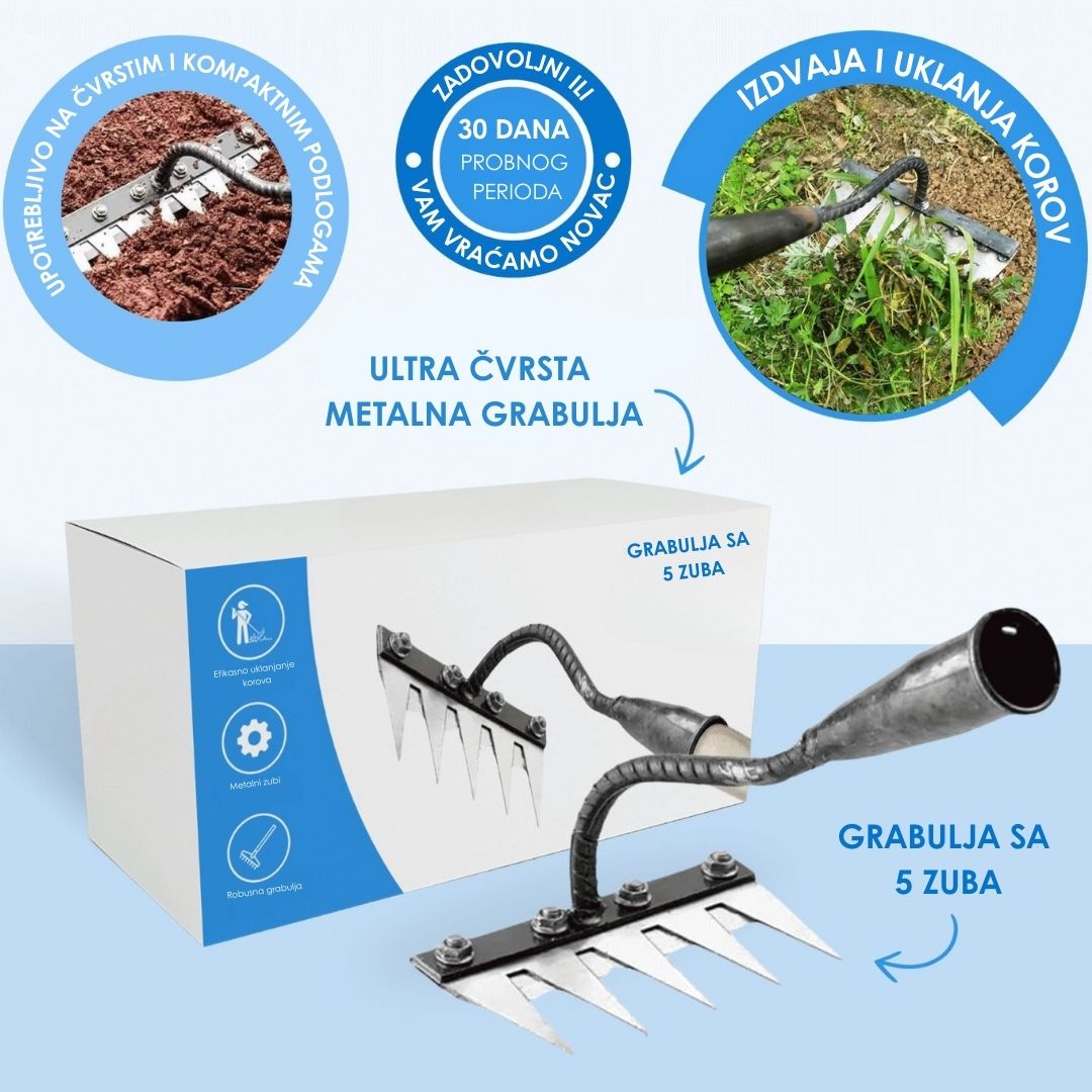 Zbogom invazivnim korovima! Revolucionarna grabulja za uklanjanje korova je savršen alat za održavanje vašeg vrta bez napora. Dizajnirana za efikasno uklanjanje korijena bez oštećenja tla, nudi ergonomsku dršku i izuzetnu čvrstoću.