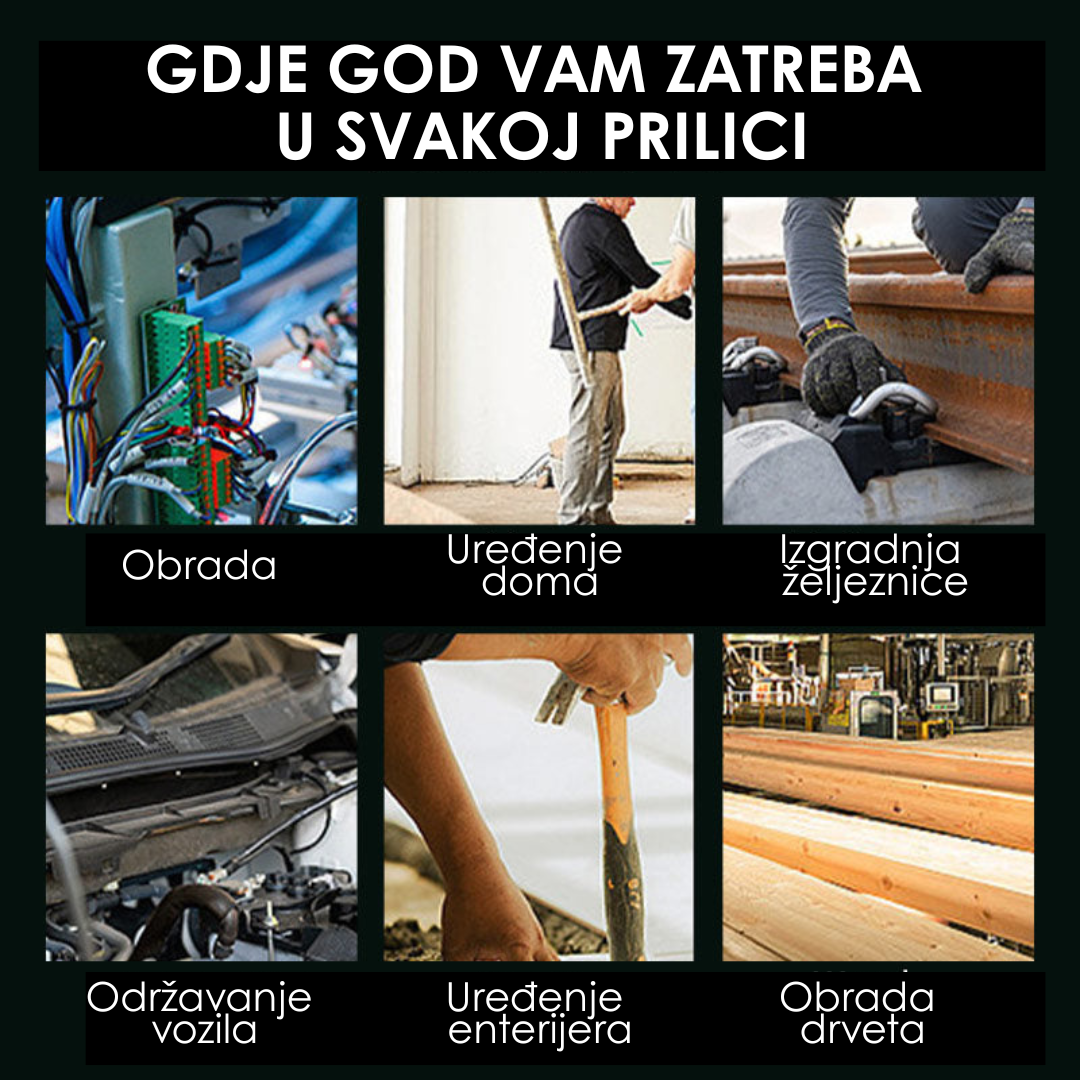 Ovaj alat je savršen za širok spektar primjena, uključujući obradu, kućnu dekoraciju i željezničku gradnju. Također je odličan za automobilsko održavanje, unutrašnje uređenje i obradu drveta. Bez obzira na posao, ovaj uređaj pruža tačnost i pouzdanost potrebnu za svaki zadatak.