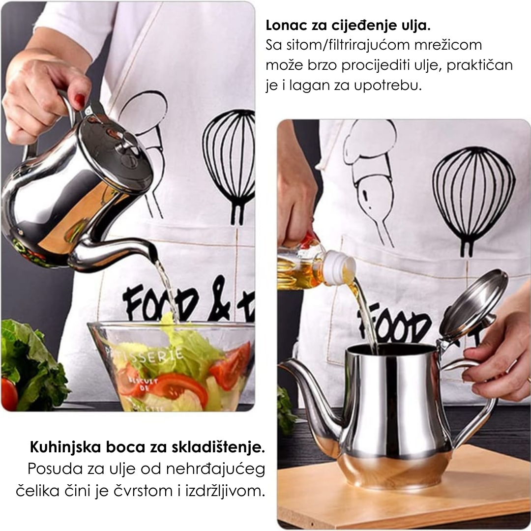 Savršena za kućnu i profesionalnu upotrebu – restorane i kuhinje. Pogodna za čuvanje masti od slanine, ulja, masnoće, kokosovog ulja, ulja za prženje i drugih vrsta jestivih ulja.